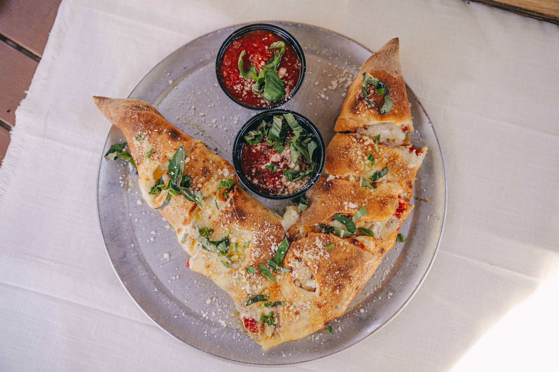 Finished the V Pizza Way (EVOO, Pecorino Romano, and fresh basil). V Signature San Marzano tomato sauce served on the side.